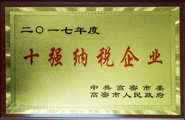 孚日榮登高密納稅十強和工業二十強雙榜首