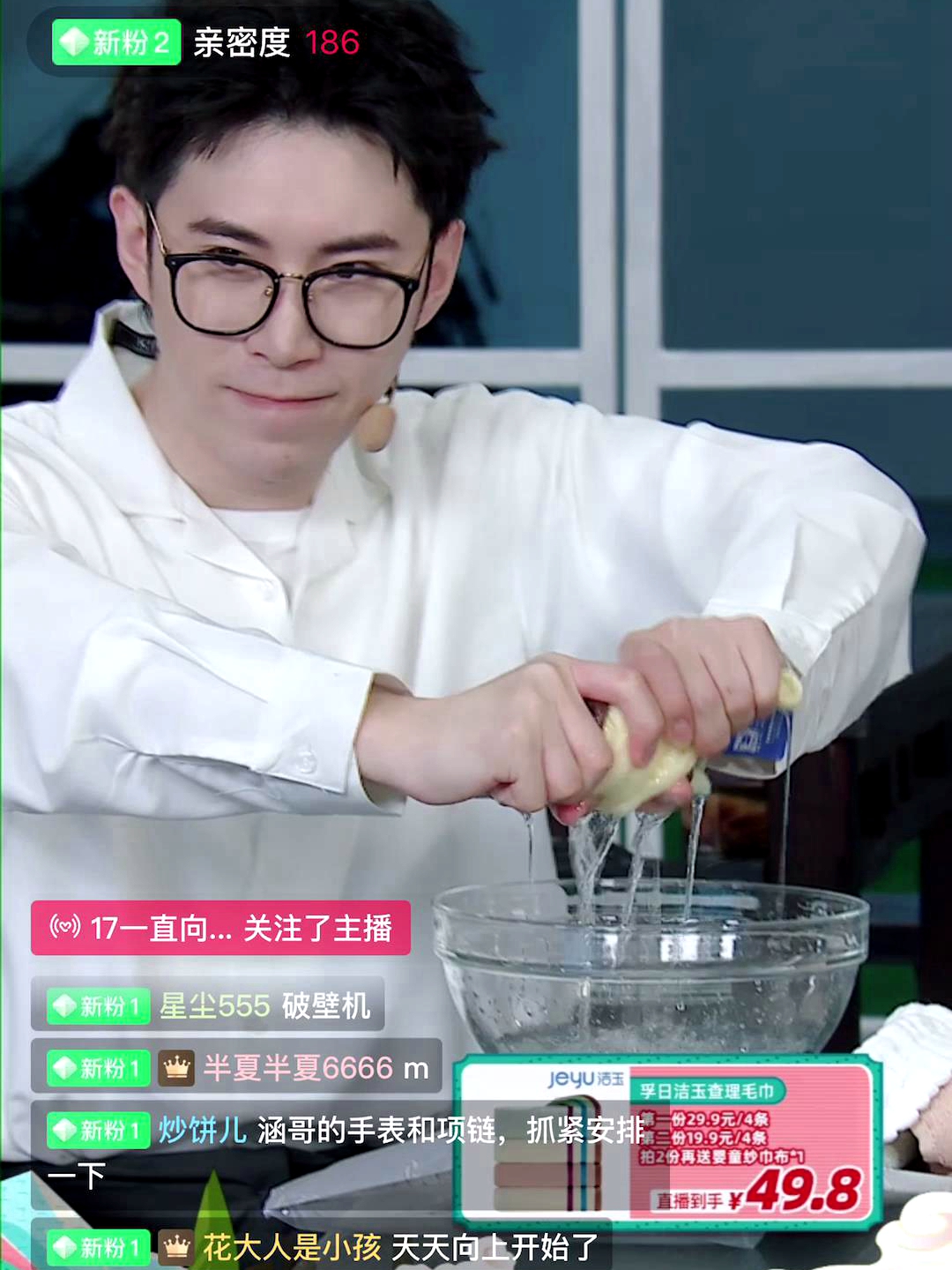 汪涵第二個問題回歸了消費者體驗,“有些毛巾,如果不是很好的話,它很容易掉毛掉色?”吳總現場科普了毛巾選購指南,口訣就是:一看、二摸、三試,一看織造和染色的外觀質量,二摸手感是否蓬松、舒服,三試吸水性這一關鍵指標。汪涵將毛巾攥在手心,表示“按照年輕人話說,這個毛巾捏起來QQ的。”而隨后的吸水實驗,也顯示一條毛巾將玻璃盆中的水很快吸滿。毫不奇怪,孚日潔玉毛巾為人稱道的就是6A品質:A級臻材、A級瞬吸、A級柔軟、A級親膚、A級致密、A級安全。