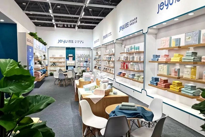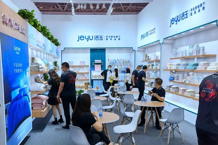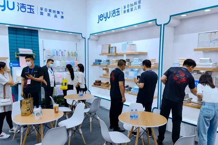 仲夏之月,萬(wàn)物方盛。2022年6月15日至18日,第30屆中國(guó)(深圳)國(guó)際禮品及家居用品展覽會(huì)盛大舉辦。作為深圳禮品展的長(zhǎng)期參展商,孚日集團(tuán)攜旗下品牌“sunvim孚日家紡”和“jeyu潔玉毛巾” 亮相8號(hào)館8F01-10展位,以“只此青綠 一眼萬(wàn)年”的主題形象,倡導(dǎo)健康、安全、舒適的“孚日6a科技”家居理念。孚日集團(tuán)董事、副總經(jīng)理孫浩博蒞臨展會(huì)現(xiàn)場(chǎng)指導(dǎo)。